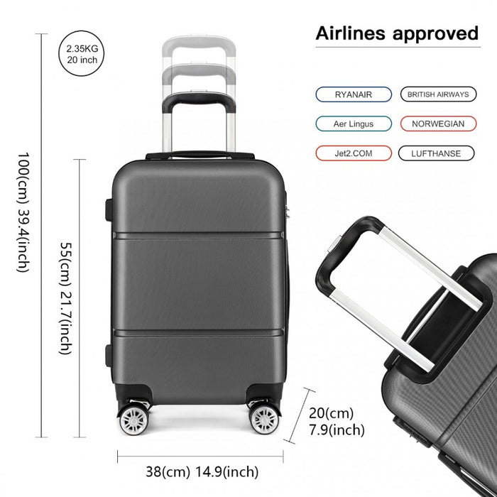 Hard Shell Abs Carry On Suitcase 20 Inch - Grey