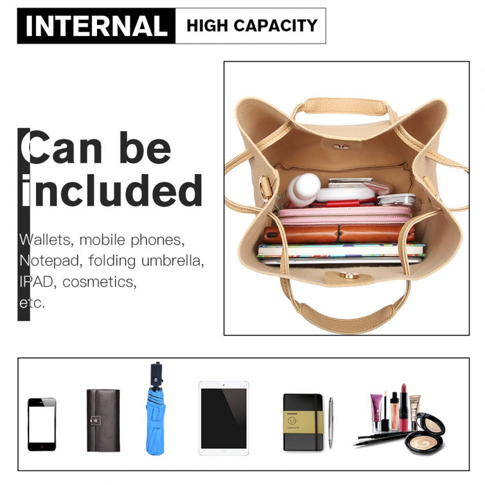 Lb1937 - Miss Lulu 4 Piece Set Shoulder Tote Handbag - Beige