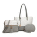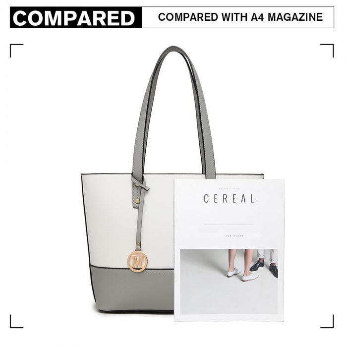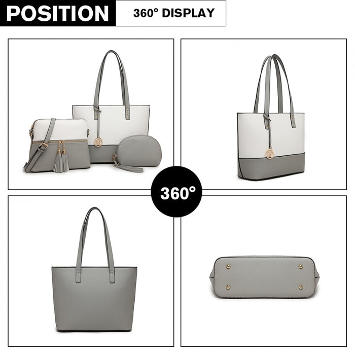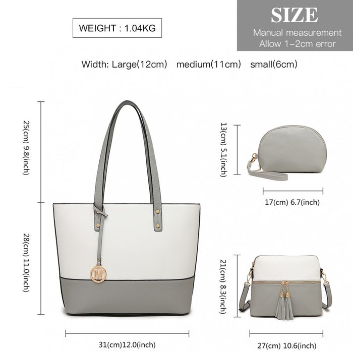 Lg2023 - Miss Lulu 3 Piece Leather Look Tote Bag Set - Grey And White
