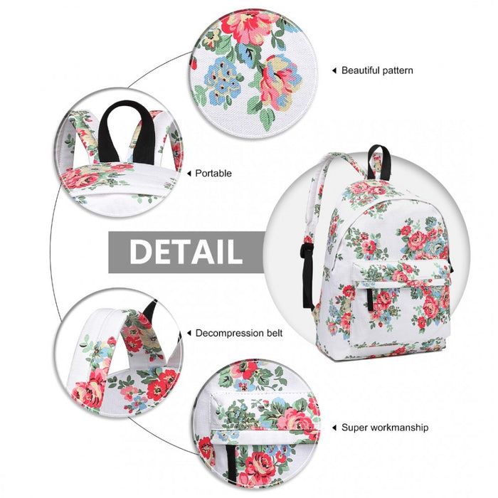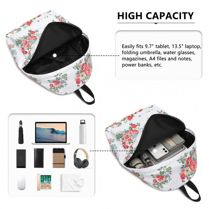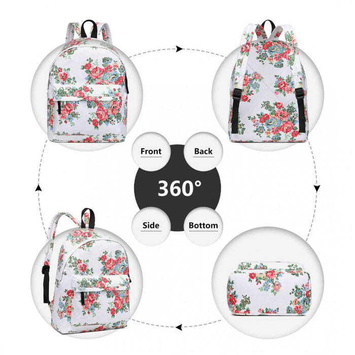 E1401f - Miss Lulu Large Backpack Flower Polka Dot - Beige