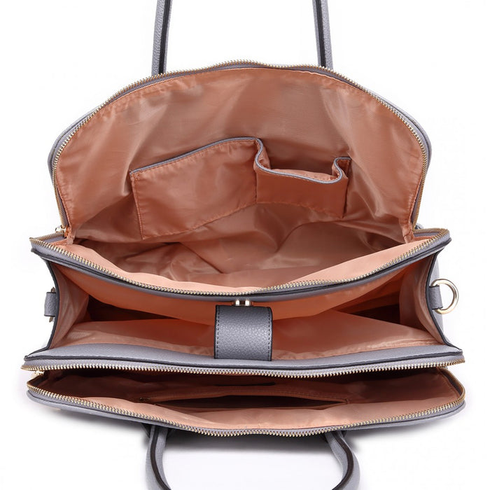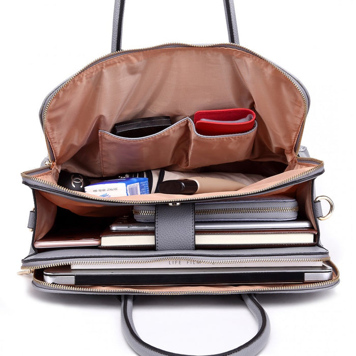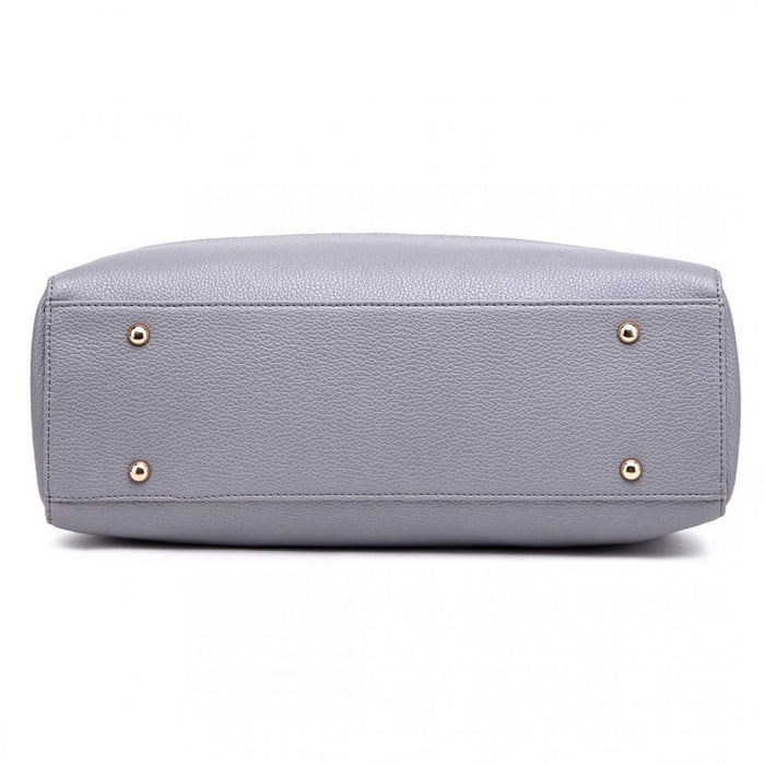 Lt1726 - Miss Lulu Textured Pu Leather Medium Size Classic Tote Bag Shoulder Bag Grey