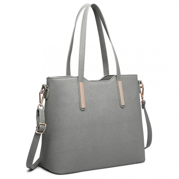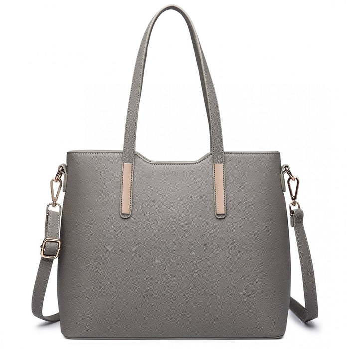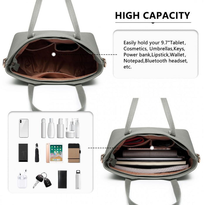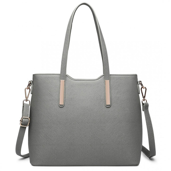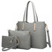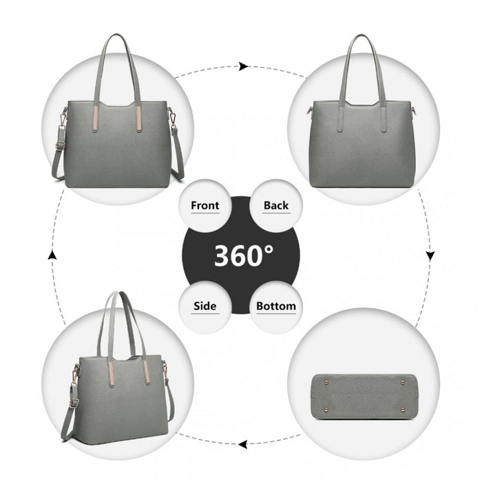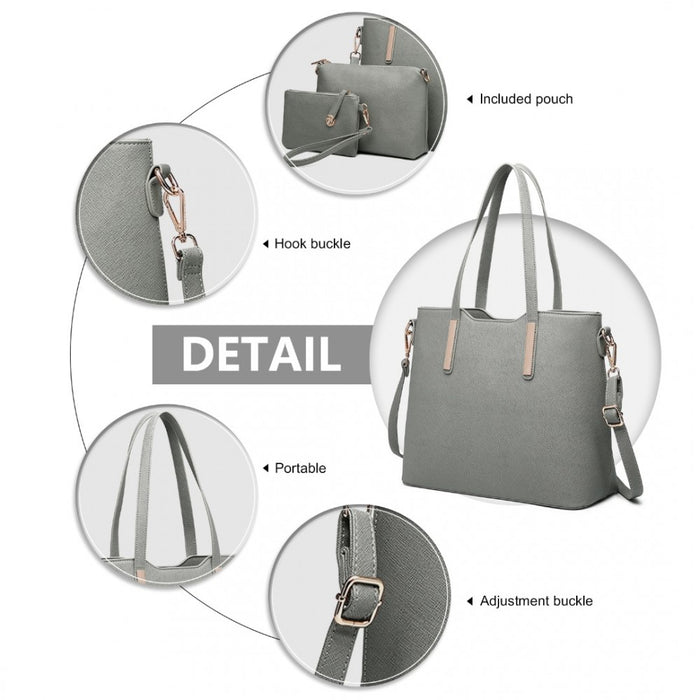 Lt6648 - Miss Lulu Three Piece Tote Shoulder Bag And Clutch - Dark Grey