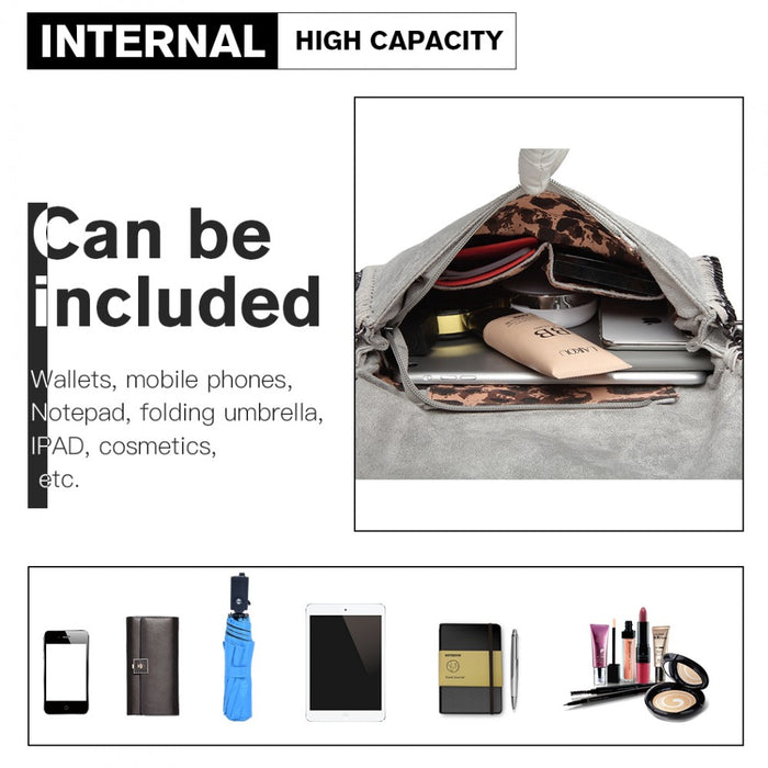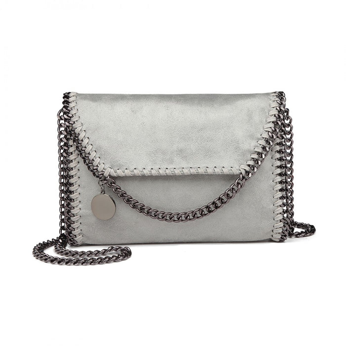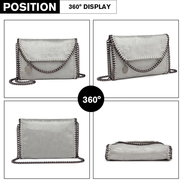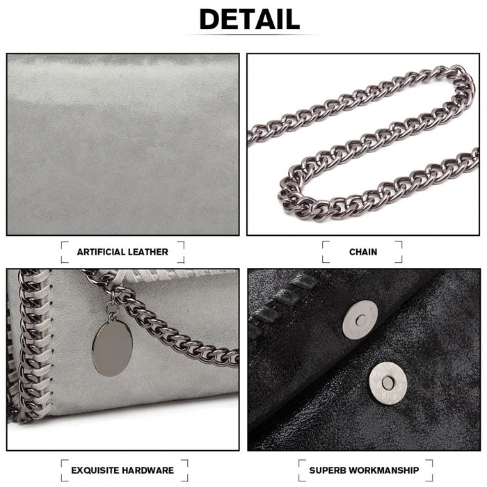E6844 - Bolso de hombro plegable con cadena Miss Lulu con apariencia de cuero - Gris