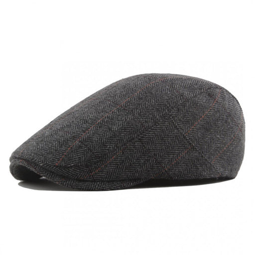 CAP-1 - Men's Newsboy Baker Boy Herringbone Flat Cap Hat - Black