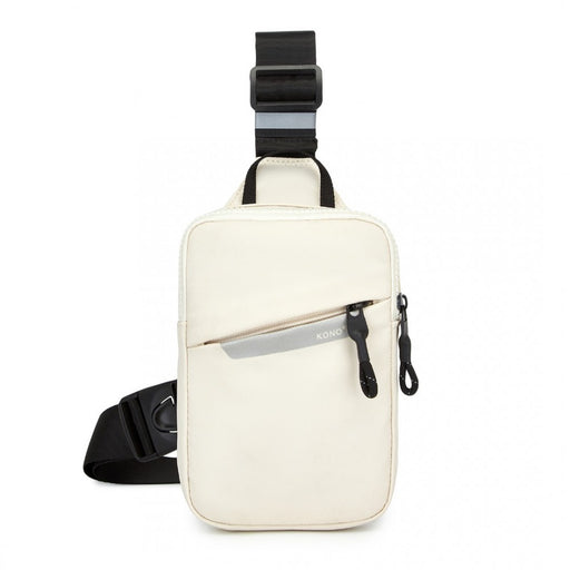 CEK2445 - Kono Lightweight Crossbody Sling Bag with Adjustable Strap Multiple Pockets for Travel and Everyday Use - Beige
