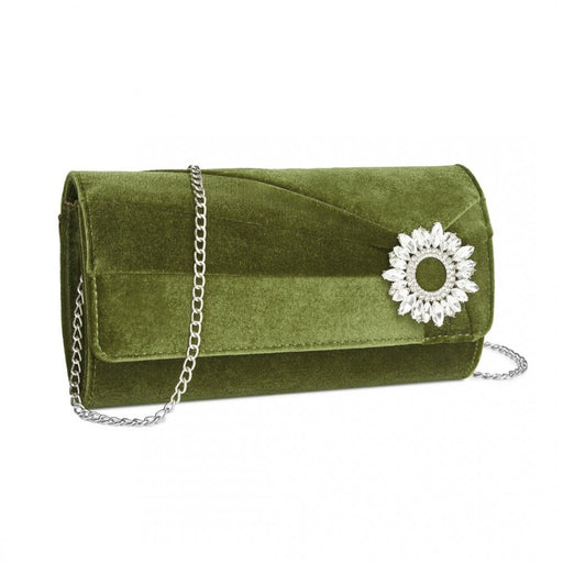Ver todos los detallesCLM2457 - Miss Lulu Elegant Velvet Evening Clutch with Crystal Ring & Detachable Chain Strap - Versatile Shoulder or Handheld Bag - Green