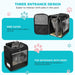 Side pockets provide space for pet essentials, such as treats, water bottles, or toys.