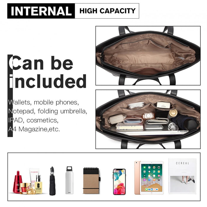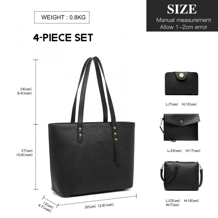 Lg6931 - Miss Lulu 4 Piece Handbag Set - Black