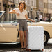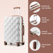 K2395L - British Traveller 32 Inch Extra-Large Diamond Texture ABS+PC Hard-Shell Spinner Suitcase with Telescopic Handle - Cream