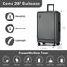 KSK2493 - Kono Durable 28 Inch ABS+PC Hardshell Suitcase with TSA Lock Lightweight Travel Luggage with 360° Spinner Wheels - Grey
