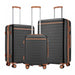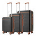 KSK2584 - Kono Scratch-Resistant 3-Piece Hard Shell Luggage Set with Horizontal Stripe Design, Brown Accents & Spinner Wheels - Grey and Brown