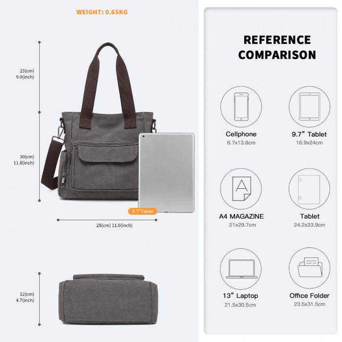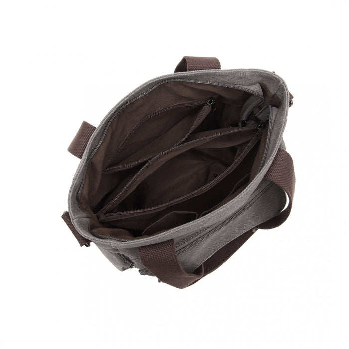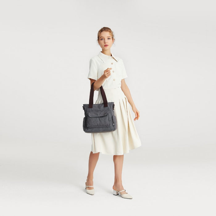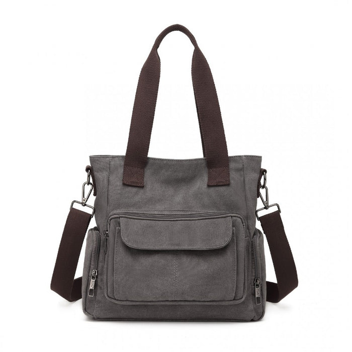 Eb2125 - Kono Large Capacity Multi Compartment Canvas Crossbody Tote Bag - Grey