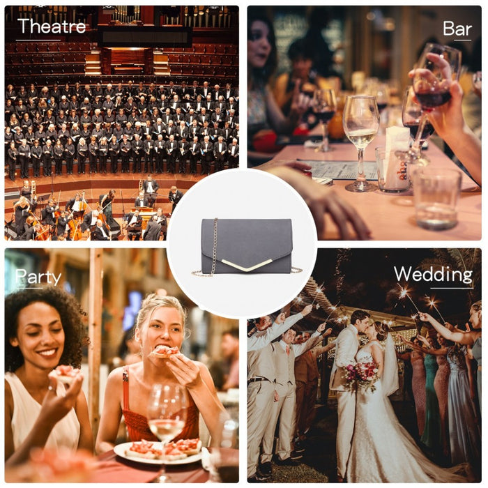 Envelope clutch handbag Gold tone hardware Inner a small pocket. A detachable chain shoulder strap. Made from high quality faux leather . Perfect for parties and nights out. Matches other handbags, satchels and purses in our collection. Measurements (approx): 25cm x 6cm x 15cm