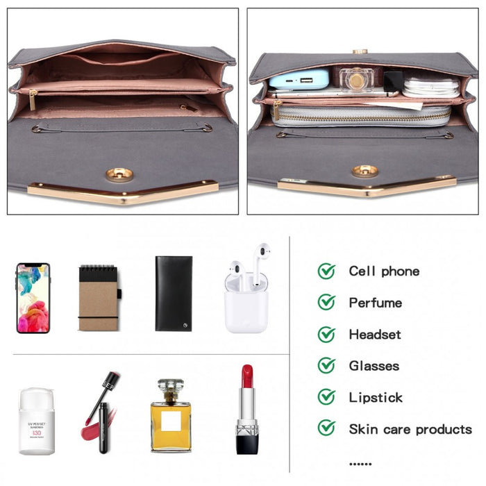 Lh1756 - Miss Lulu Leather Look Envelope Clutch Bag - Grey