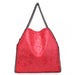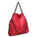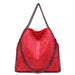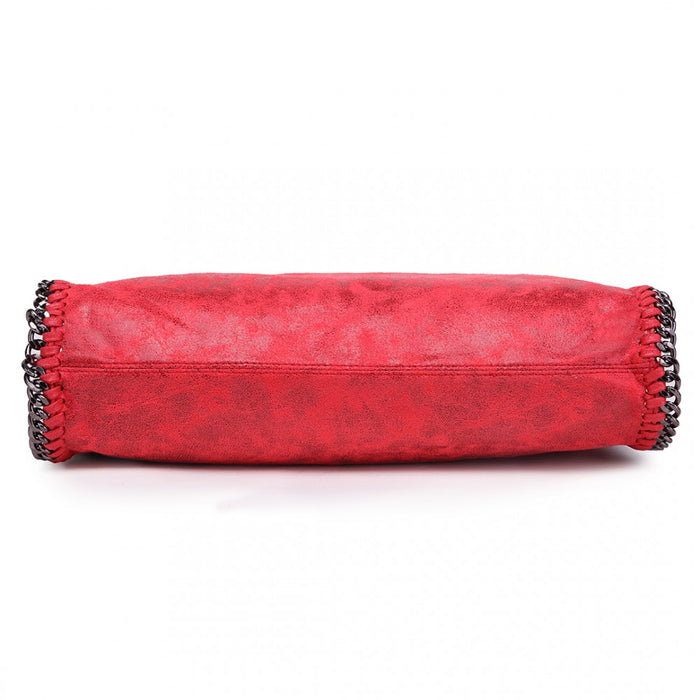 S1760 - Miss Lulu Metallic Effect Chain Tote Bag - Red