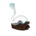 The glass is hand-blown and while still hot it is then relaxed over a piece of Gamal root, the glass then hardens to the shape of the wood ensuring a perfect fit. They are crafted using a natural product by using hand tools in the traditional Balinese way. It provides a one-of-a-kind setting for stones and air plants, cut flowers or a wine decanter.