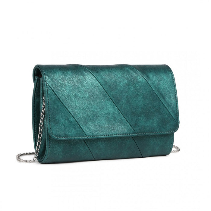 Eh2257 - Miss Lulu Stylish Twill Clutch Leather Chain Evening Bag - Green