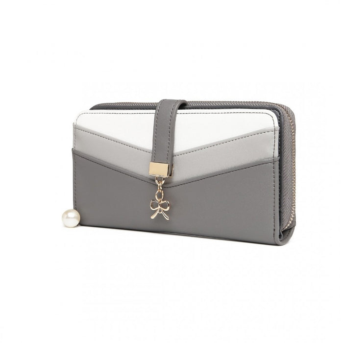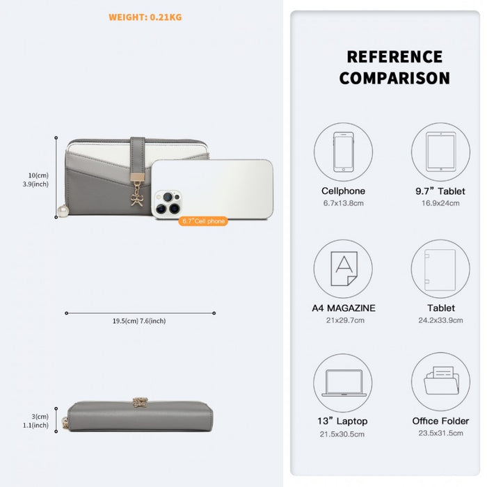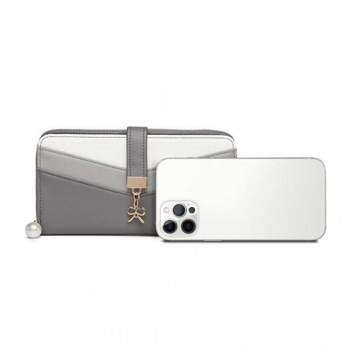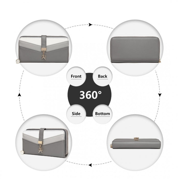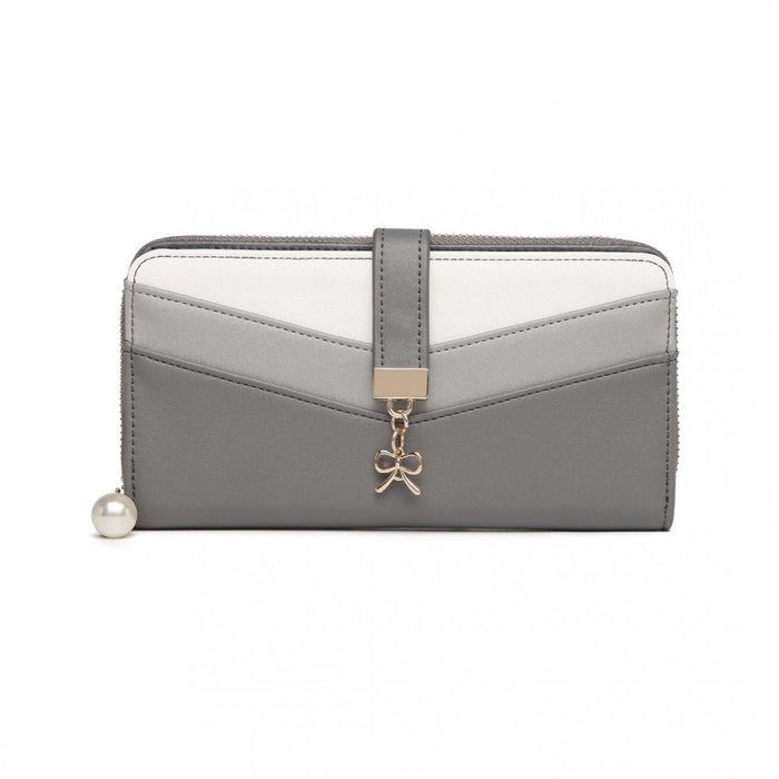 Lp2215 - Miss Lulu Mixed Colour Women's Leather Look Clutch Purse - Grey